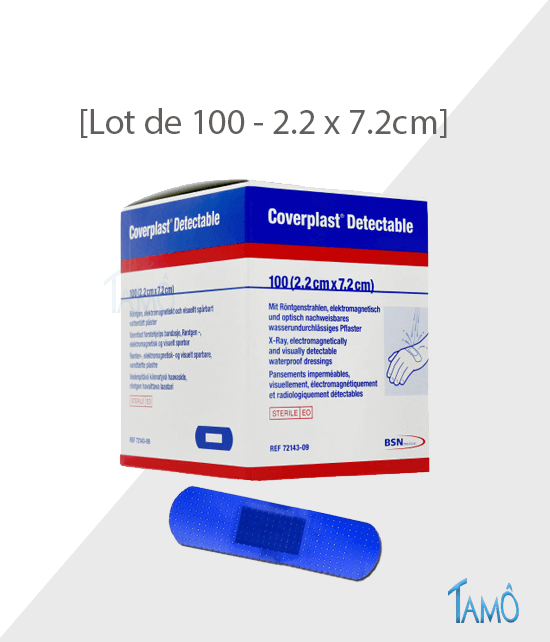 | Description technique | L’industrie du secteur alimentaire tout comme la restauration doivent respecter certaines normes d’hygiène qui imposent notamment depuis 2003 l’utilisation de pansements de couleur bleue. Ces pansements sont repérables grâce au coloris bleu, détectables dans la chaîne de production grâce à un fil d’aluminium mis sous la compresse, mais aussi détectables aux rayons X Ce pansement stérile assure ainsi une protection très hygiénique. |