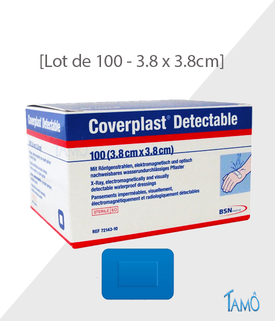 | Description technique | L’industrie du secteur alimentaire tout comme la restauration doivent respecter certaines normes d’hygiène qui imposent notamment depuis 2003 l’utilisation de pansements de couleur bleue. Ces pansements sont repérables grâce au coloris bleu, détectables dans la chaîne de production grâce à un fil d’aluminium mis sous la compresse, mais aussi détectables aux rayons X Ce pansement stérile assure ainsi une protection très hygiénique. |