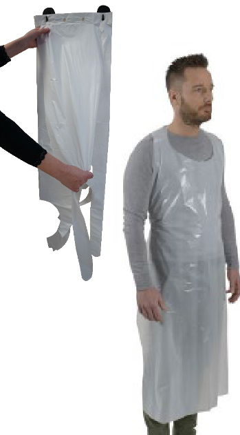 Tablier à usage unique en polyéthylène, imperméable, anti-salissures.