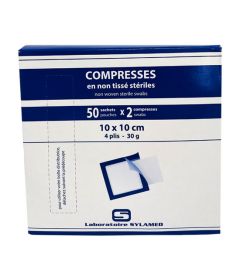 - 100 Compresses vendues par lot de 50 sachets de 2 compresses
