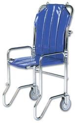 Robuste chaise portoir pliable en acier chromé équipée de 2 roues, d’une poignée de portage arrière rabattable et de 4 oeillets de fixation pour bretelles de portage, d’une toile enduite et plastifiée, matelassée et renforcée sur 2 épaisseurs avec à l’arrière du dossier un porte-documents amovible et transparent. L’ensemble à pliage intégral. Testée à 250 kg de charge en statique et dynamique.