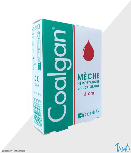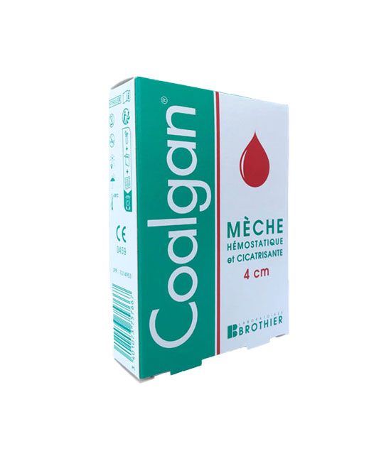- Mèche hémostatique Coalgan, une solution efficace pour stopper les saignements du nez, de la peau et de la bouche.