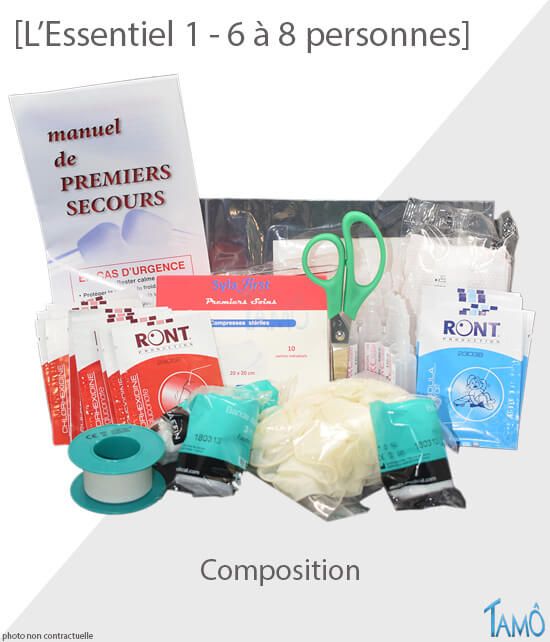 La composition de la trousse de secours Essentiel 1 - 6 à 8 personnes