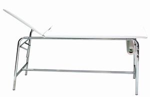 Table d'examen Blanche tube carré en acier inoxydable.