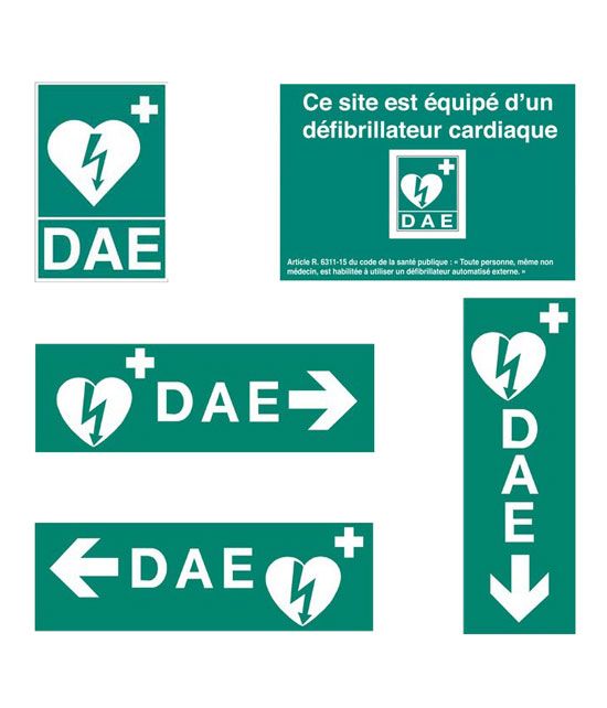 - Contenu du pack : 5 plaques signalétiques DAE en PVC 1 mm.