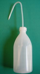 Flacons col de cygne disponible en plusieurs tailles (non monté), en polyéthylène.Dispositif permettant la contenance de produit liquide.
