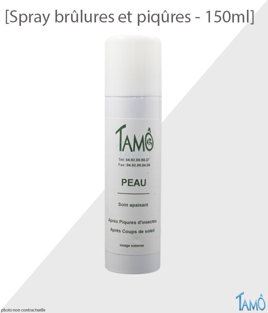 Le spray Tamô brûlures et piqûres permet une application pour : brûlures légères et superficielles, coups de soleil, ampoules, écorchures, égratignures des enfants et adultes, gerçures, peaux abimées, piqûres d'insectes.