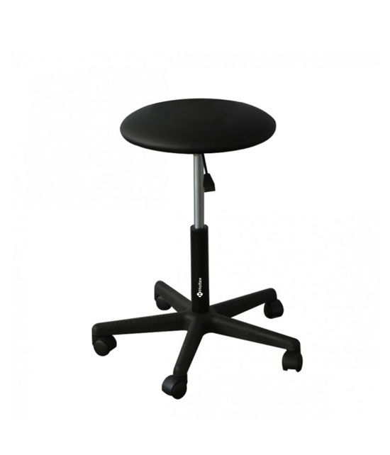 Tabouret vérin gaz noir, pied noir. Piétement 5 branches avec roues.