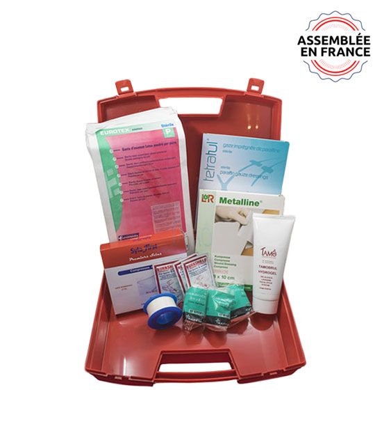 - Trousse spécifiquement conçue pour les interventions rapides en cas de brûlures thermiques.
